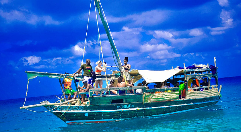 • Sailing on a traditional dhow boat, relaxing on sandbanks, and enjoying a seafood BBQ during Safari Blue